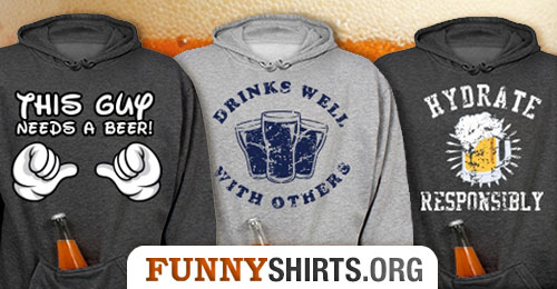 With our easy to use design center the user can take any design and switch it onto their product style and color of choice. We didn’t forget about you ladies! We offer a variety of men and women’s tees, tanks, and sweaters that will fit an array of personalities and styles. For those hardcore drinkers check out our tailgate hoody. This amazing hoody has a built-in pocket that is a perfect fit for your refreshing beverage. The insulated pocket has reinforced stitching that keeps your beverage sturdy whether you’re playing corn hole or flipping burgers. It is also equipped with a bottle opener to make your life just that easy It’s a win for everyone!