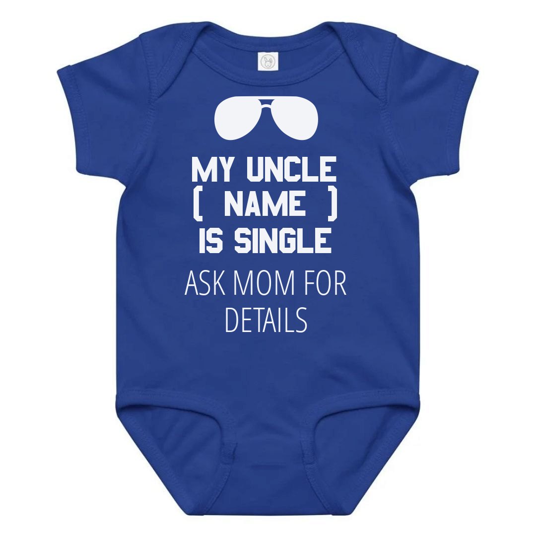 A baby onesie is good way to promote all those single uncles out there. This particular infant bodysuit says: My Uncle (Name Here) is Single in a big bold font. Then in a thinner font below it says: Ask Mom for detail. Ha ha! So if you are about to become an Uncle, and you want that adorable baby to help you meet women, well then this is perfect gift.
