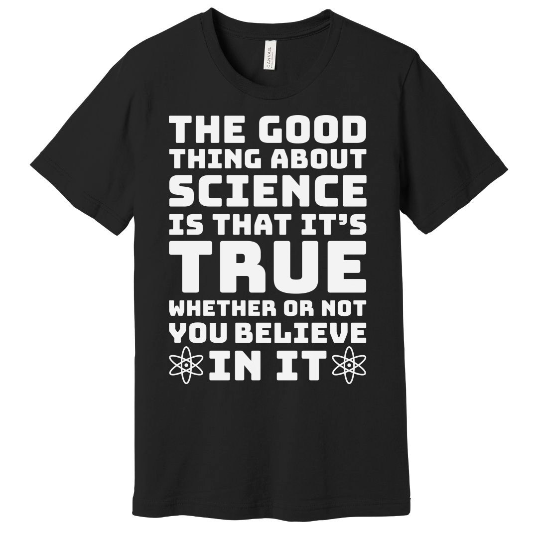 In the words of Neil deGrasse Tyson: "The good thing about science is that it's true whether or not you believe in it". Snag this trendy top and show your support for scientists all over the wordl!