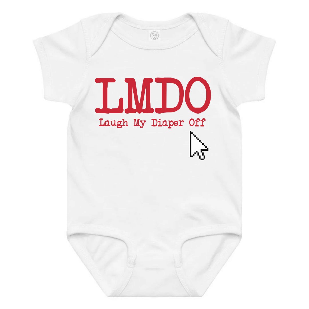 Oh mommy, you so funny! There's no better sound than the sincere laugh of a baby. Now you can add some more humor with this funny onesie. This baby is going to LMDO (laugh my diaper off).