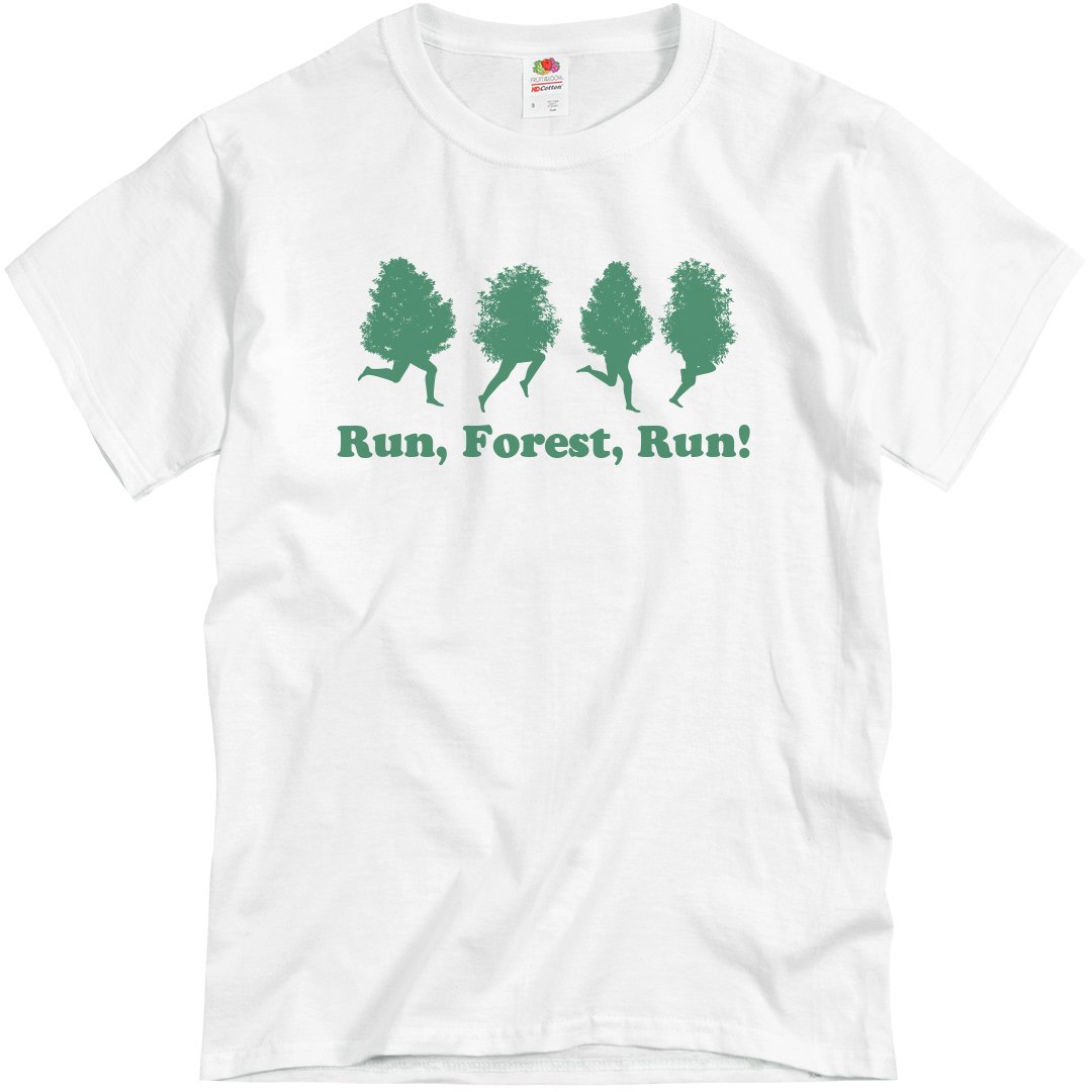 Run forest, RUN!!!! Get a cool and clever t-shirt that is sure to get some laughs. The running trees make for a great t-shirt pun.