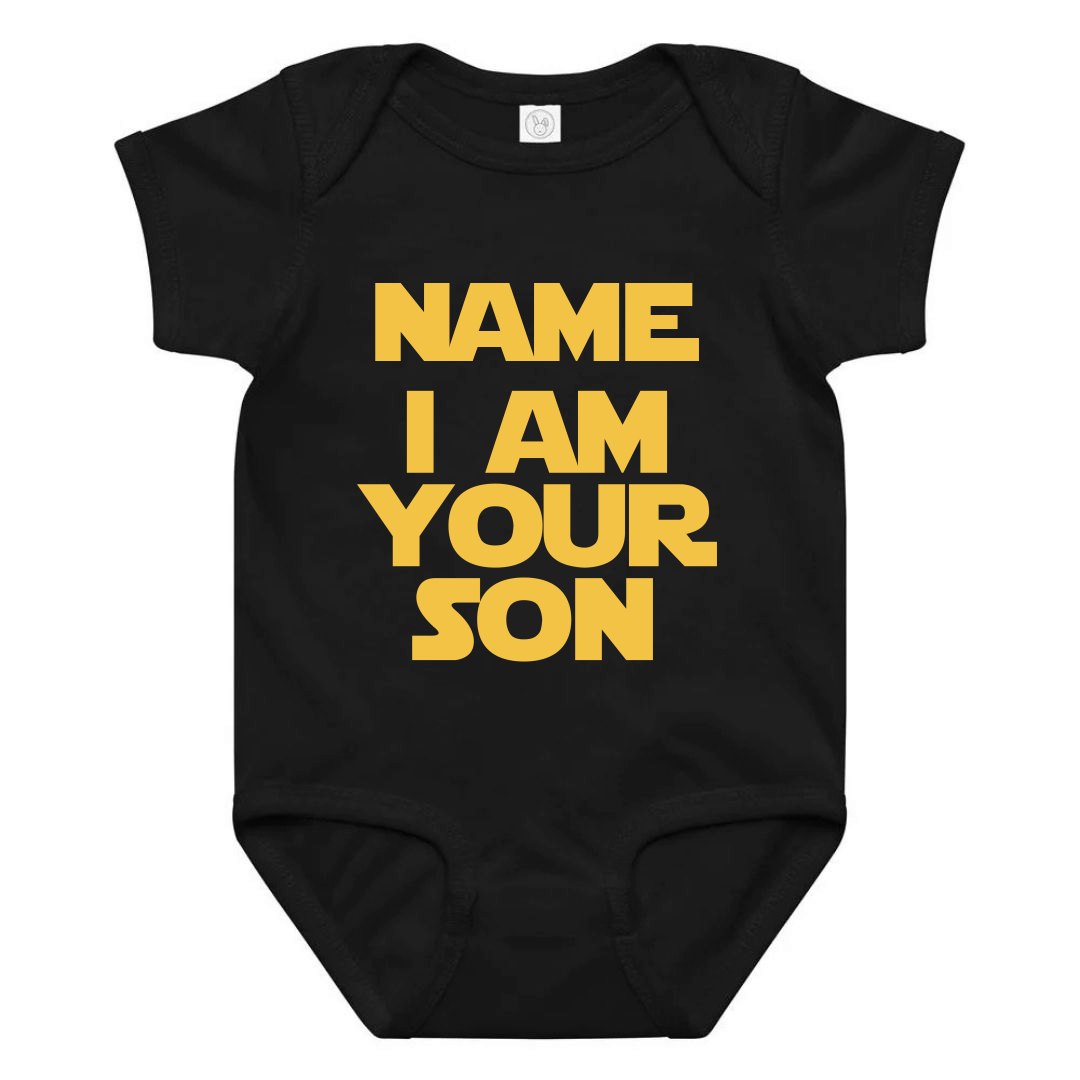 Personalize a funny 'I am your son' onesie for your little guy to wear on Father's Day this year. Make sure you check out the matching dad t-shirt so they can rock them together!