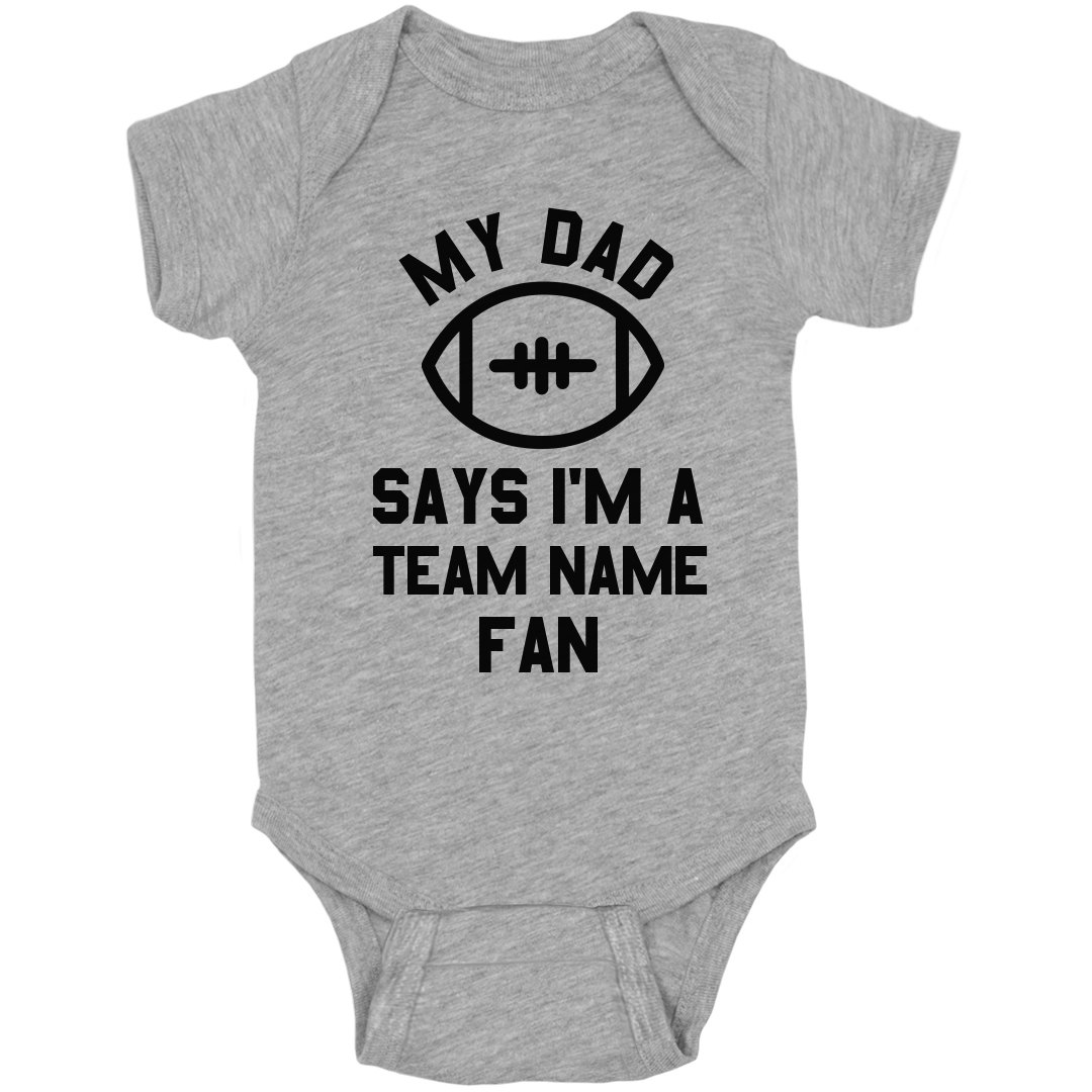 Customize this onesie by replacing the team name text with whatever text you want. This is the perfect way to celebrate whatever obscure team or fandom in your life. Are you extra proud of your little league team from around the block? You can cheer them on with this custom onesie! You don't need to always be cheering for the same huge teams that everyone loves. Be obscure! Be a complete hipster about it! Oh, my infant son loves so and so... you probably haven't heard of them. Ha. I love that.
