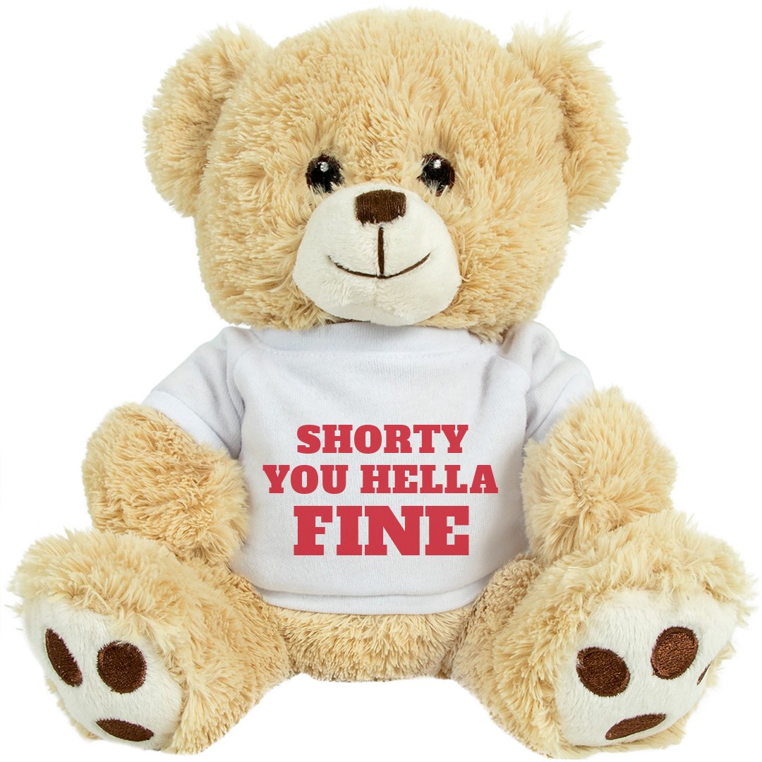 Got a Valentine's Day crush? tell her how you feel with this funny and cute teddy bear. Damn shorty you hella fine.