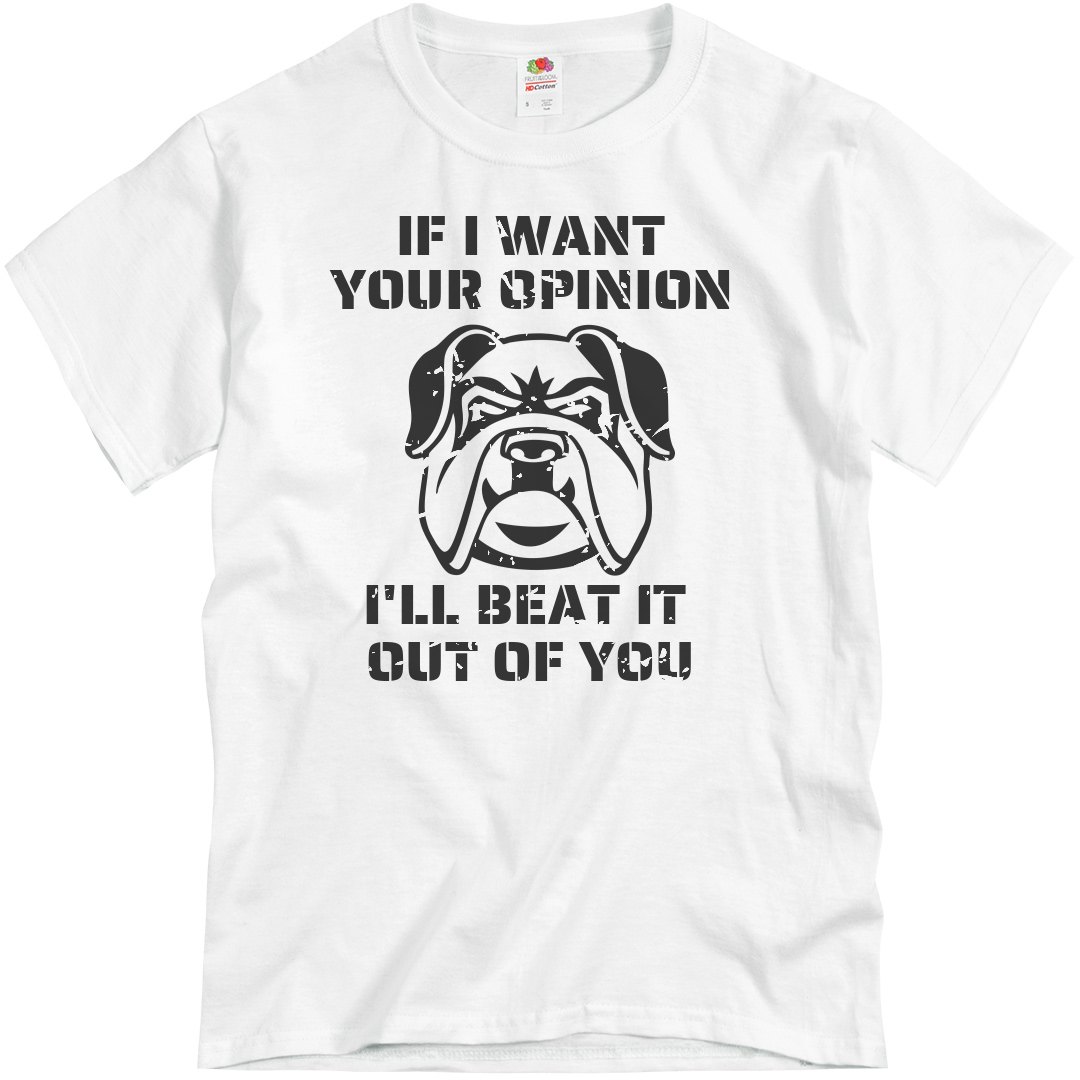 Listen here smartguy, if I want your opinion, I'll beat it out of you. Keep the haters at bay with this hilarious tee.