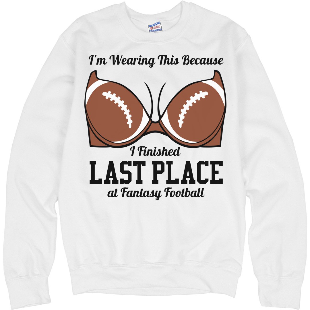 Last place place never looked so good. If you're the director of your office fantasy football league, this funny sweatshirt is a must have. For the big shot in your group of friends that thinks they know every statistic there is to know about football, but still finishes in last place, make him pay by presenting him with this last place sweatshirt!