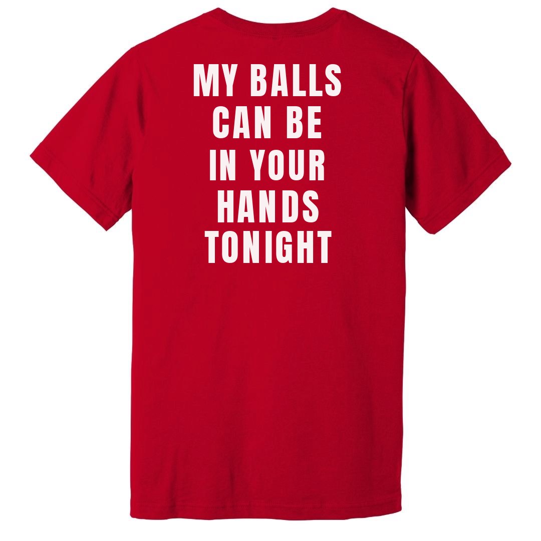 We all love sports with balls. Whether they involve bases, baskets, and rackets, we all want to get our hands on some balls every now and then. Let your fans know they can have your balls in their hands tonight with this trendy tee.