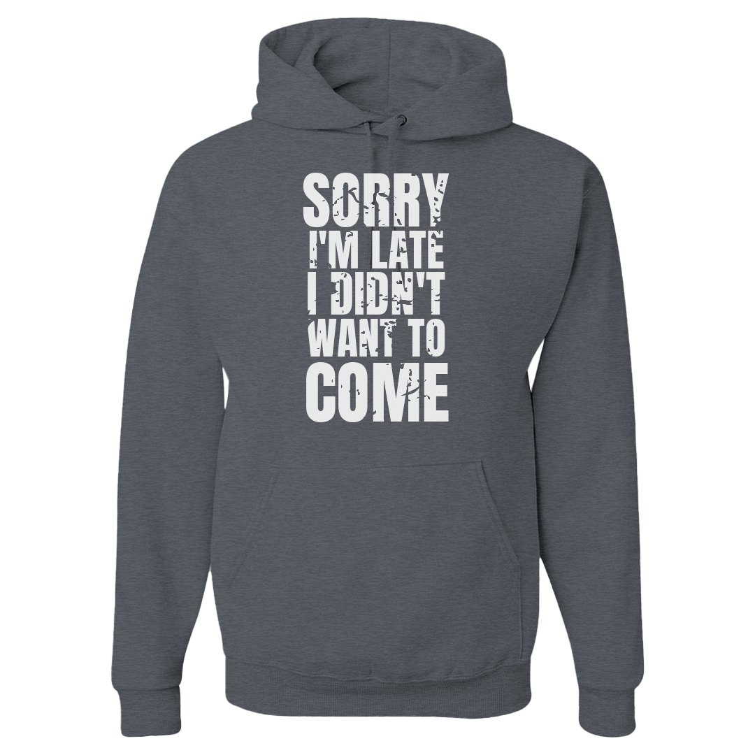 Give your friends and family your deepest apologies with this hilarious hoodie which informs them that you are sorry you are late, but that you didn't really want to come in the first place.